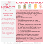 Weekly Craft Workshop When: Thursdays at 1 PM, starting January 15th What to Bring: Just your creativity! Use Nina’s tools, paper, stamps, and dies. Join us weekly for hands-on crafting, fun projects, and a welcoming creative space. All cards collected will be sent to Cards for Kids to brighten a child’s day!” All skill levels are welcome!
