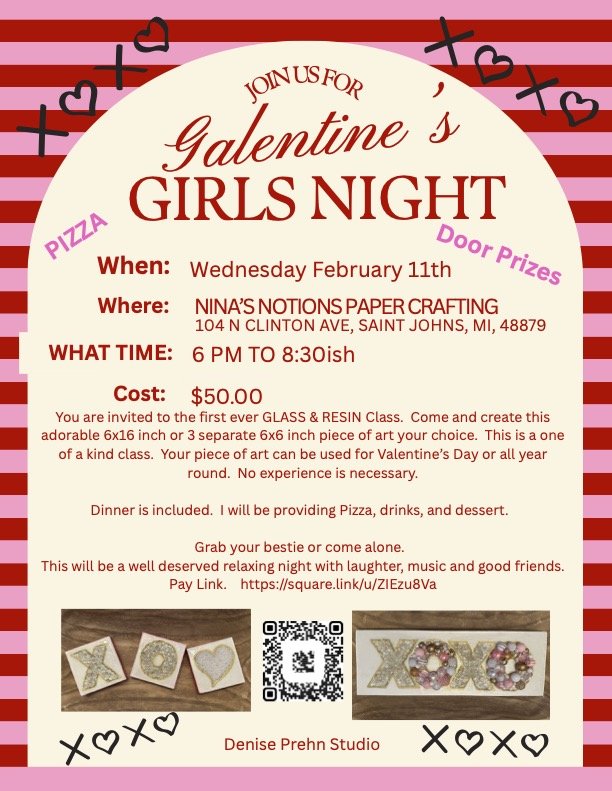 You are invited to the first ever GLASS & RESIN Class. Come and create this adorable 6x16 inch or 3 separate 6x6 inch piece of art your choice. This is a one of a kind class. your piece of art can be used for Valentine's Day or all year round. No experience is necessary.