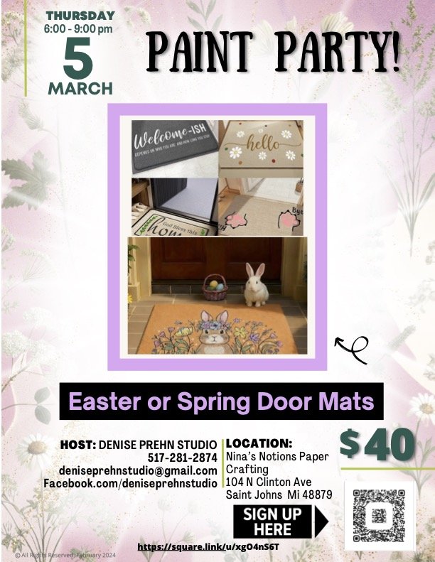 Shake off winter and join us for a fun, music-filled night outcreating a bright, colorful Easter or Spring doormat that’s perfect for welcoming guests to your porch. Bring your friends, enjoy the good vibes, and leave with a fully finished, functional, and vibrant doormat you’ll love every time you walk through the door!
