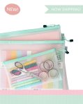 Medium: 13x10 clear vinyl reinforced mesh storage pouch with zipper closure and easy-grip pull